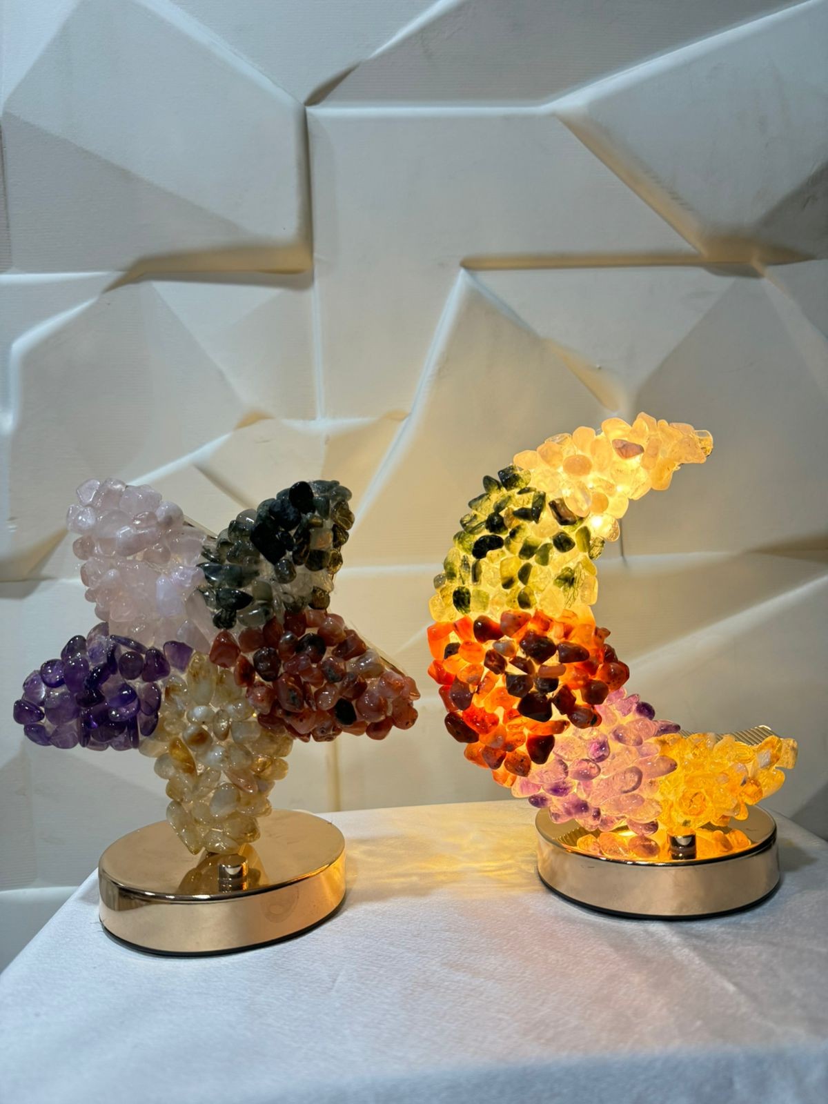Introducing the AuraGlow Gems Celestial Collection, a beautiful set of two table lamps featuring natural Amethyst crystals. The Star and Moon designs bring mystical energy and stylish illumination to your space. The lamps utilize energy-efficient LED lighting and are supported by elegant gold-finish bases. Perfect for enhancing the atmosphere in bedrooms, living rooms, or spiritual corners.