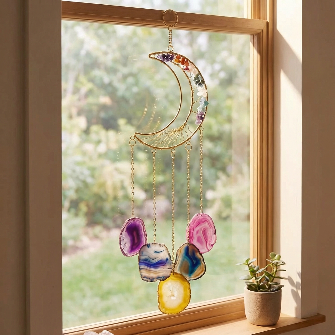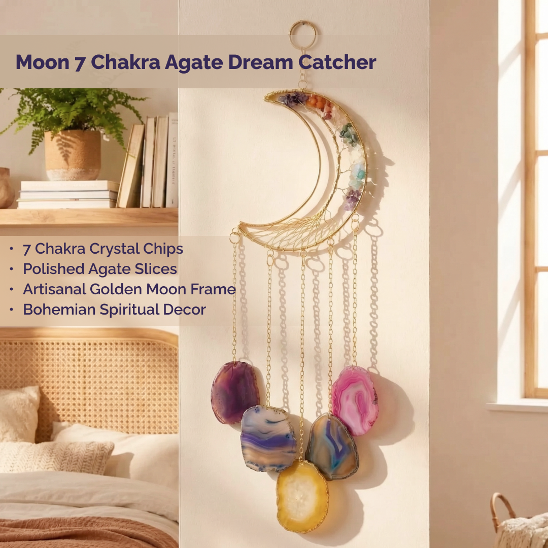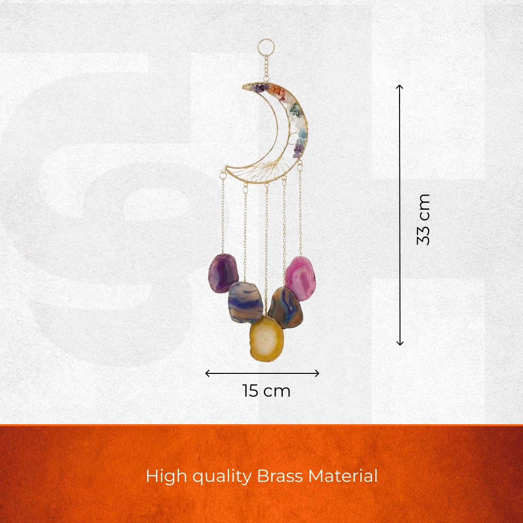 Enhance your home interiors with this beautiful handcrafted Moon and Agate wall hanging. Featuring natural stone slices and a metallic wire design, it brings a peaceful and artistic vibe to your walls.