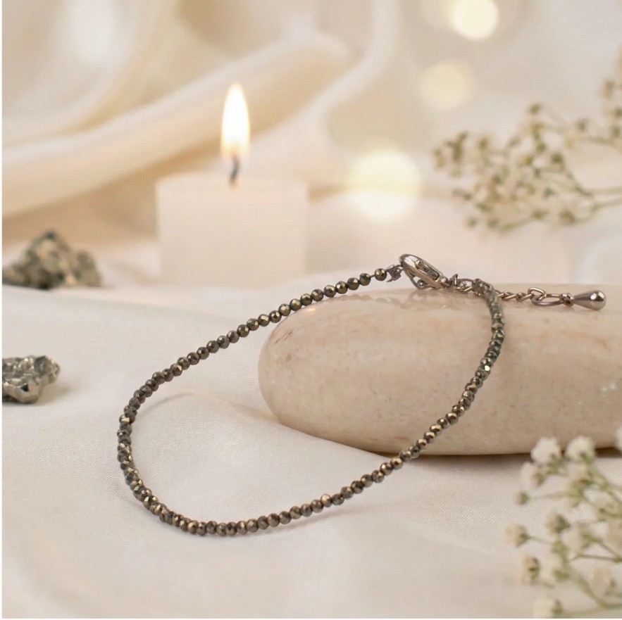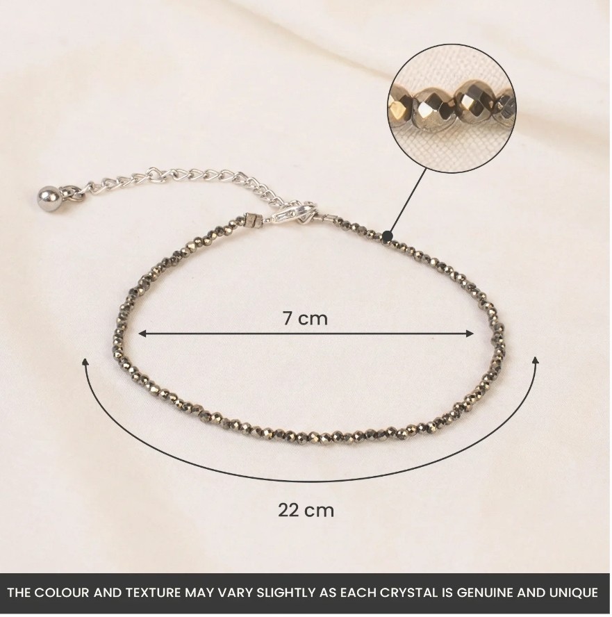 Boost your prosperity and shield yourself from negative vibes with the AuraGems Raw Pyrite Anklet. This elegant piece of foot jewelry is not just a style statement but a tool for manifestation. Made with authentic pyrite beads, it is believed to attract wealth and success while keeping you focused on your goals.