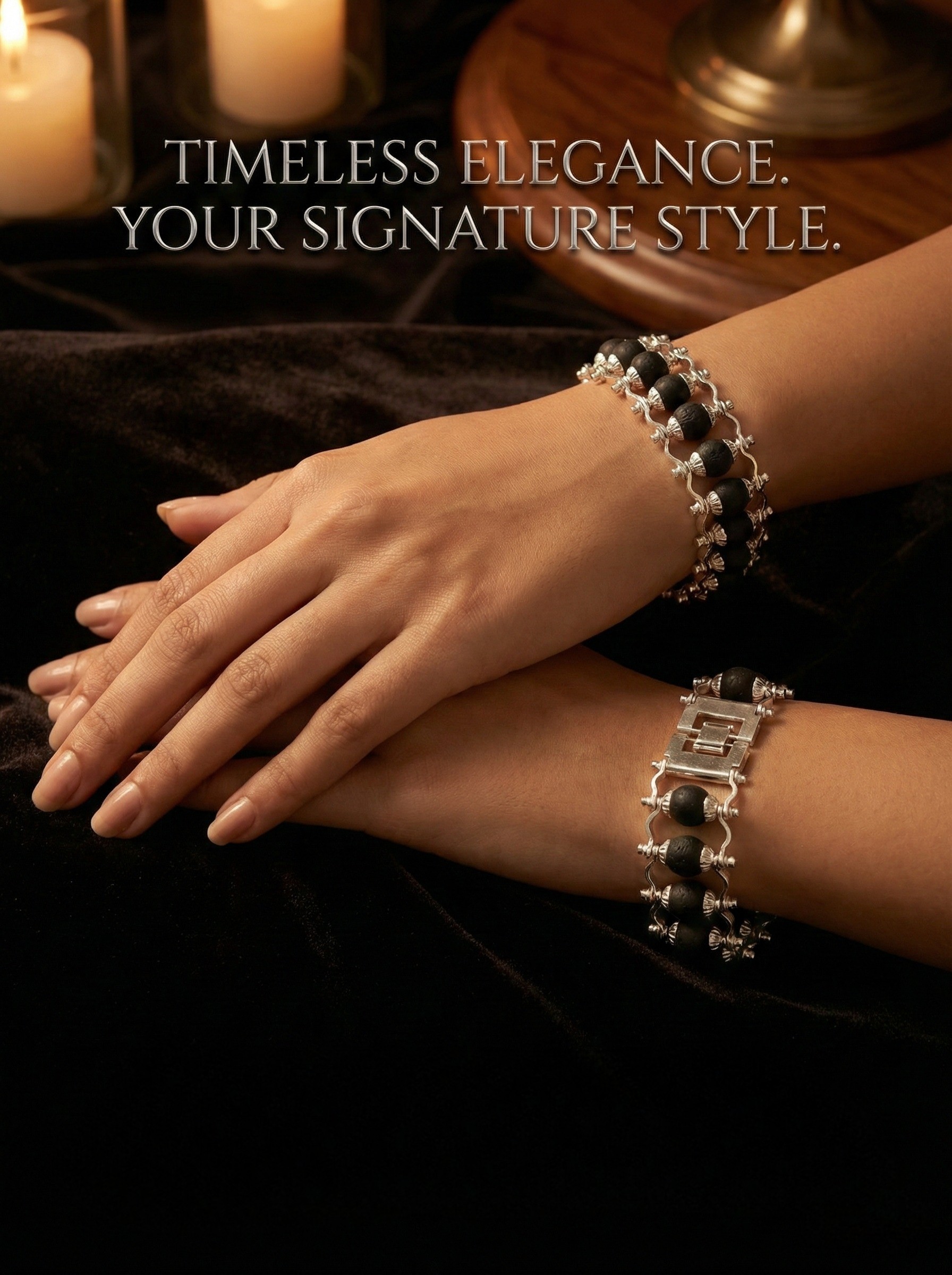 Known as the "Diamond of Woods," Karungali (Black Ebony) has been used for centuries to absorb negative energy and bring success. This bracelet combines the sacred power of natural Karungali beads with a sophisticated oxidized silver-style frame, making it a perfect blend of tradition and "Signature Style."