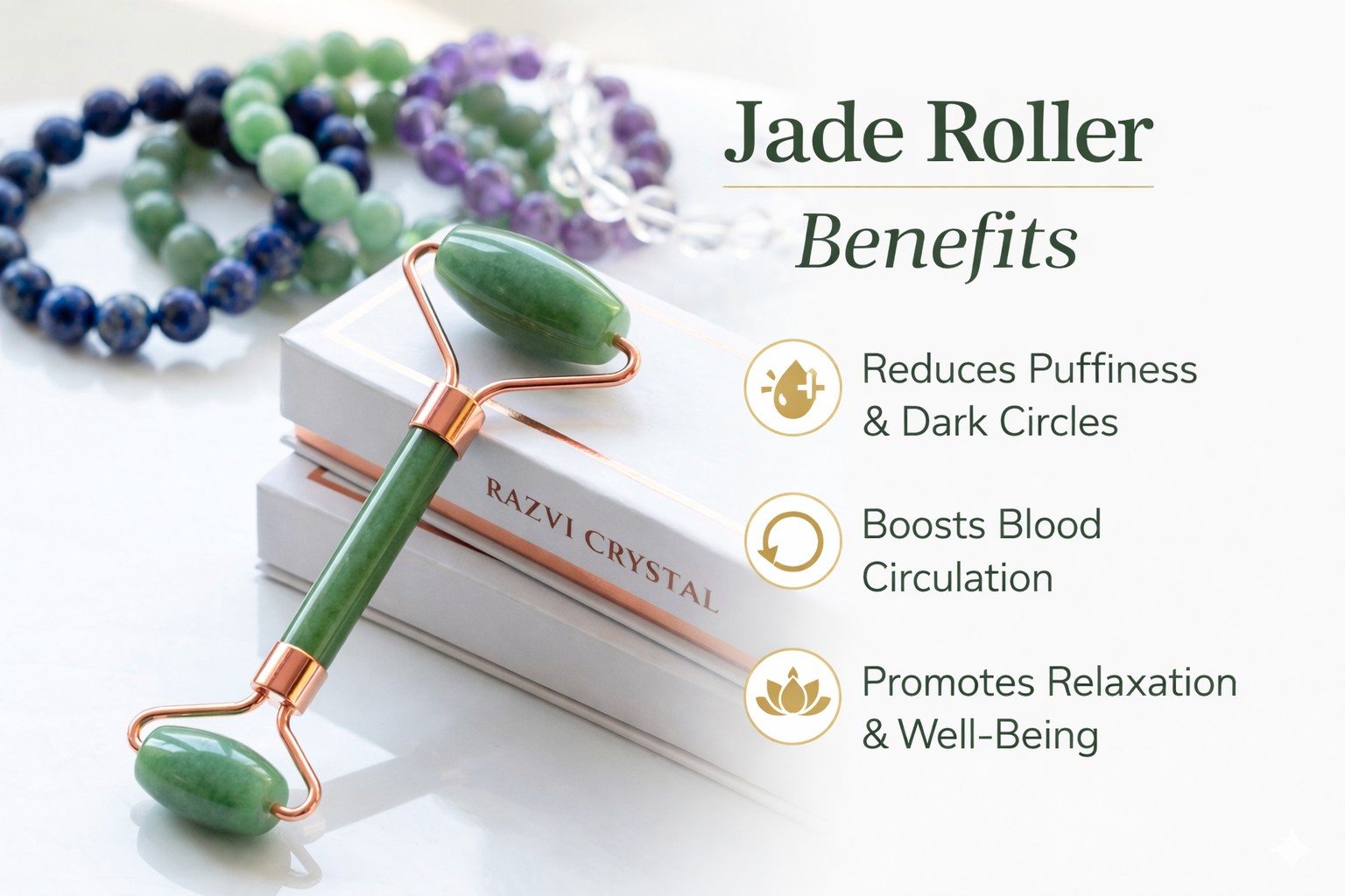 The Razvi Crystal Jade Roller is your secret weapon for a sculpted, glowing face. Made from natural green jade, this tool helps in reducing dark circles and boosting skin elasticity.