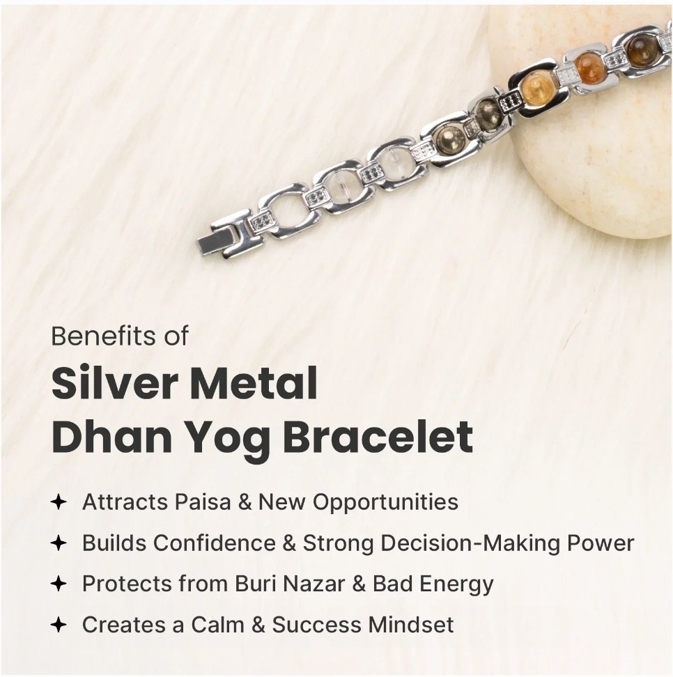 Transform your luck with the Dhan Yog Bracelet. This silver metal accessory is engineered for those who believe in the power of spiritual energy. It helps in attracting financial growth while keeping you safe from negative vibes.
